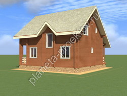Загородный коттедж из бруса с мансардным этажом подойдет для постоянного проживания семьи из 4-5 человек. Лаконичный и скромный дизайн по достоинству оценят любители простых, функциональных и удобных построек. Внешний облик дома выдержан в строгом стиле: минимум декоративных элементов и прямота линий подчеркивают рациональность проекта деревянного дома из бруса с мансардой. Удачным оказалось цветовое решение во внешнем оформлении постройки: белые перила террасы и оконные наличники выгодно контрастируют с основным цветом стен.