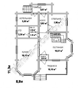 Разработчики данного проекта постарались сделать его максимально привлекательным и изящным. Красота внешнего облика постройки во много достигается благодаря таким конструктивным элементам, как эркеры. В зоне одного из них расположена кухня, а в зоне другого – гостиная. Вход в коттедж предваряет небольшая терраса. Летом на ней можно разместить небольшой чайный столик со стульями. Помимо этого запланирован дополнительный черный вход через холл и самостоятельный доступ с улицы к котельной. Значительное пространство первого этажа занимает просторная гостиная и кухня. Также проектировщиками предусмотрена небольшая спальня. Её можно использовать в качестве гостевой комнаты. Мансарда отведена под зону отдыха. Здесь находятся три спальни и балкон. Для удобства жильцов здесь также предусмотрен дополнительный санузел и ванная.