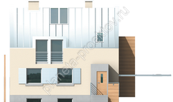 Стиль модерн – достаточно новое явление в российском строительстве, но уже сейчас видно, насколько популярными стали дома, выполненные в духе этого направления. В данном бетонном доме в стиле модерн реализованы одновременно тенденции современного стиля и минимализма. Такое сочетание позволяет сделать экстерьер интересным и привлекательным. В данном проекте оригинально выглядит оформление фасадов, который состоит из нескольких прямоугольных объемов. Так, аккуратные вставки выступают на фасаде в роли эркеров и люкарн, придавая коттеджу многоступенчатую конструкцию.