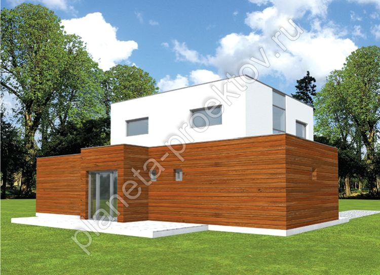 Ценители лаконичных композиций и простых архитектурных форм наверняка оценят по достоинству данный коттедж. Несмотря на то, что кровля обустроена максимально простая, дом в стиле модерна из бетона все же выглядит необычно и эффектно с любого ракурса. Благодаря грамотному расположению оконных проемов на фасаде внутри дома будет светло. Современный и стильный облик хорошо будет смотреться в любом коттеджном поселке и даже в черте города.