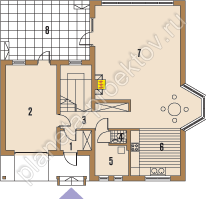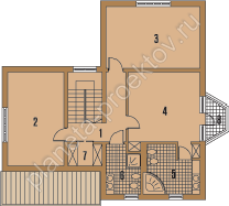 Планировочное решение отличается простотой и логичностью. Как и в большинстве проектов деревянных домов, пространство двух жилых ярусов грамотно поделено на дневную и ночную зоны. Дневная зона – это просторная комната, выполняющая функции гостиной и кухни одновременно. Зону отдыха образуют несколько спален и два санузла. Грамотное и логичное планирование в сочетании с аккуратным экстерьером и придаю данному коттеджу изящность и элегантность облика.