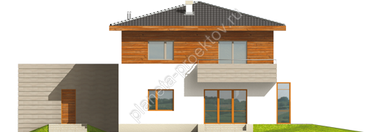 Красивый внешне и функционально грамотно распланированный дом понравится тем, кто ценит точность и геометричность форм. Привлекательно смотрится сочетание двух ярусов, главное отличие которых в размерах. Как и свойственно строениям в стиле Райта, коттедж венчает оригинальной формы кровля, которая широко нависает над основным зданием, обеспечивая тем самым его надежную защиту. Отделка дома также выполнена довольно интересно, поскольку в ней сочетаются светлые и темные оштукатуренные поверхности, а также деревянные панели. В минималистическом духе оформлен и гараж.