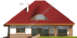 Небольшой по площади дом в американском стиле, построенный из бетона, гармонично впишется в любой по размерам участок. Аккуратная шатровидная крыша – главный акцент в этом лаконичном, но отвечающем всем требованиям современного строительства тенденциям. Красиво выглядит и отделка здания – например, фундамент и входная группа декорированы облицовочным кирпичом, что способствует достижению выразительного облика коттеджа. С внутренней стороны располагается галерея, которую украшают панорамные окна и колонны.