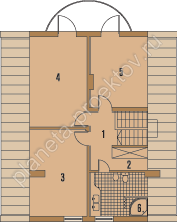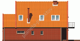 Композиционный строй коттеджа напоминает жилые объекты, построенные по проектам деревянных домов. Балконы позволяют сделать фасады более яркими и привлекающими внимание. Планирование пространства выполнено на основе принципов логичности и рациональности. Распределение жилых помещений ведется по двум этажам: на первом располагается гостевая зона, на втором – зона хозяйского пользования.