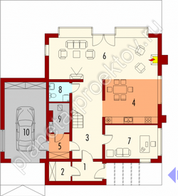 Планировочное решение соответствует тому, что предлагается в большинстве проектов деревянных домов. Так, первый этаж занят гостевой зоной, в которой кухня и гостиная представляют собой единое пространство. Вход в гараж также расположен на первом этаже. Второй этаж отведен под зону отдыха для хозяев. Сочетание удобной планировки с практичной и функциональной планировкой – главное условие достижения комфортабельного проживания в коттедже.