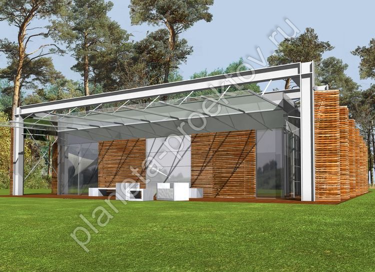 Площадь застройки: 409.98 м2 Строительный объем: 1134.36 м3 Ширина: 17 м Глубина: 29 м Высота: 5.00 м Мин. размеры участка: 25.7x37.4 м Уклон кровли: 2 ° Гараж: нет Мансарда: нет Цокольный этаж: нет