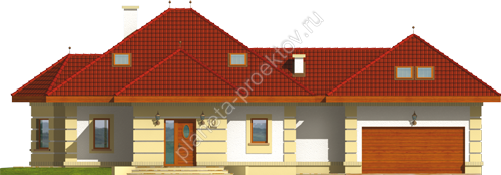 Дом отличается достаточно большой площадью и имеет вытянутую конструкцию, поэтому для его размещения потребуется просторный участок с ровным рельефом. В то же время благодаря просторности есть возможность удачно спланировать пространство. Так, первый этаж состоит из помещений разной функциональности – жилых и бытовых. Основной акцент делается на гостиной с полукруглым эркером. В мансарде хватает места для обустройства просторных спален и ванной. Построить коттеджи в стиле кантри предлагают и проекты деревянных домов.