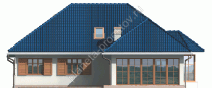 Строительство в стиле ранчо возвращает к традициям американской архитектуры, где акцент делался на простоте формы и сдержанности оформления. Данный дом из бетона, исполненный в духе ранчо, отличается нестандартной конструкцией, однако расположить его можно даже на участке с неровным рельефом. Простота наружной отделки говорит об акценте в подобных строениях делается на функциональность и рациональность. С внутренней стороны располагается просторная галерея-терраса, к которой примыкает гостевая зона, расположенная в эркере.
