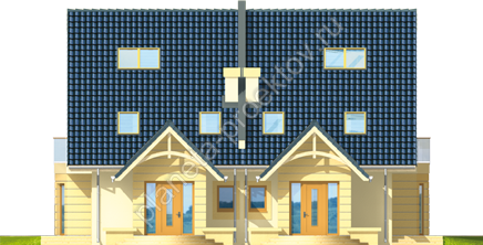 Поскольку данный дом планируется на две семьи, то весь его облик пропитан симметричностью и аккуратностью. При этом все выстроено настолько грамотно и гармонично, что не вызывает негативных эмоций. Возможно исполнение данного коттеджа и из бруса или бревна – в проектах деревянных домов можно найти достойную разработку. Планировочное решение отличается практичностью и рациональностью.