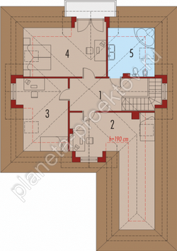 Квадратная галерея-терраса с тыльной стороны как нельзя лучше подходит для обустройства на ней зоны отдыха. К тому же она позволяет максимально использовать природное окружение, чтобы жилой объект более тесно связывался с ним. В планировочном решении хочется отметить грамотный подход к зонированию: кухня и гостиная отделены друг от друга. Таким образом, не нарушается цельность каждого помещения. Для сравнения, в проектах деревянных домов кухня и гостиная чаще всего единое целое. В мансардном этаже располагаются хозяйские покои.