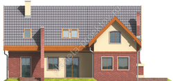 Интересным функциональным решением является оборудование каминов: один располагается на террасе, а второй – в гостиной. Такие решения довольно часто встречаются и в проектах деревянных домов. Пространственная организация помещения выстроена грамотно по этажам. Так, на первом располагается гостевая зона, где большая часть пространства занята гостиной, а кухне отведено отдельное место. Мансардный этаж отведен проектировщиками под зону отдыха. Такой проект наиболее полно отвечает всем современным требованиям строительства, поэтому оставляет только положительные эмоции.