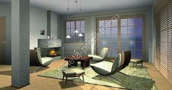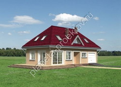 Аккуратность внешнего вида дома из бетона, построенного в американском стиле, достигается за счет сочетания целого ряда факторов. Во-первых, акцент делается на широкой четырехскатной кровле, которая придает коттеджу ощущение приземистости. Во-вторых, симметрично расположены входная группа, а также панорамные окна и гараж. Просторная галерея-терраса расположена углом, за счет чего увеличивается ее площадь. Выдержанность фасадов в классическом стиле выражается во всей симметричности композиционного решения.