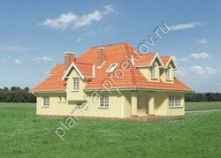 Современный дом в американском стиле, возведенный из бетона, имеет большую жилую площадь, а потому проживать в нем может большая семья с детьми. Это двухэтажное здание выглядит по-настоящему внушительно и броско. Во-первых, это сказывается влияние большой площади коттеджа. Во-вторых, за счет многочисленных архитектурных элементов создается ощущение многослойности и многоярусности. Вся мансарда буквально застроена люкарнами, которые придают коттеджу поистине яркий облик.