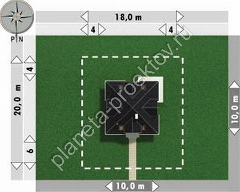 Квадратный план дома в американском стиле, построенного из бетона, лишен выступов и выемок на первом ярусе, поэтому его можно удачно расположить на любом по размерам участке. Украшением здания служит шатровая кровля, в которую оригинально вписано несколько люкарн. Наличие двух жилых этажей позволяет существенно увеличить объем полезной площади и открывает возможности для более интересной планировки. Высокие панорамные окна в сочетании с колоннами преображают облик здания, делая его более интересным.