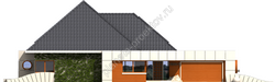 Пространственная организация помещений обоих этажей отличается достаточной площадью, поэтому каждая комната выстроена с учетом рациональности и логичности. Основная часть пространства первого яруса отведена под гостиную, которая соединяет функции кухни и столовой. На этом же уровне достаточно места для обустройства кабинета, небольшой комнаты, например, под библиотеку, двух санузлов и кладовой. Жилое здание связано с гаражом. Три комнаты и ванная образуют мансарду.
