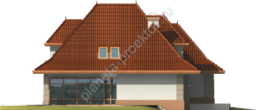 Эффектный и нарядный дом в стиле кантри, созданный из блоков, станет ярким украшением любого загородного участка. Ассоциации со сказочным теремом возникают в связи с оригинальной кровлей этого строения: каждый объем коттеджа венчает скос четырехскатной крыши, благодаря чему коттедж выглядит стильно и интересно. Люкарны нестандартной формы служат не только функциональным, но и декоративным украшением строения. Небольшая галерея-терраса необычной конструкции может использоваться как летняя зона отдыха.
