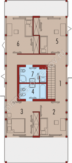 С точки зрения объемно-планировочного решения, принятого для данного коттеджа, оно максимально простое. Открытые пространства, практически лишенные стен, разграничиваются с помощью дверей-перегородок. Точно таким же способом оформлены помещения второго этажа, где планируется расположить зону личного пользования. Просторность данного коттеджа гармонично сочетается с его рациональностью и открытой планировкой.