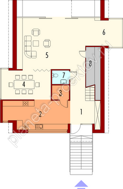 Оригинальная конструкция отразилась и на нестандартности планировочного решения. Многочисленные выступы можно удачно использовать для достижения интересного интерьера. При этом все помещения этажа сквозные, то есть одна комната выходит в другую. На втором этаже узкий холл собрал вокруг себя несколько спален, а завершается организация планировки оборудованием ванной и санузлом.