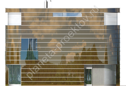 Объемно-планировочное решение характеризуется простотой и логичностью, а потому пространство этажа свободное и не отягощено наличием большого количества стен или дверей. Практически полностью остекленная гостиная образует пространство первого яруса, а санузел завершает план. На втором этаже планируется обустраивать зону отдыха, которая будет состоять из трех комнат и ванной.