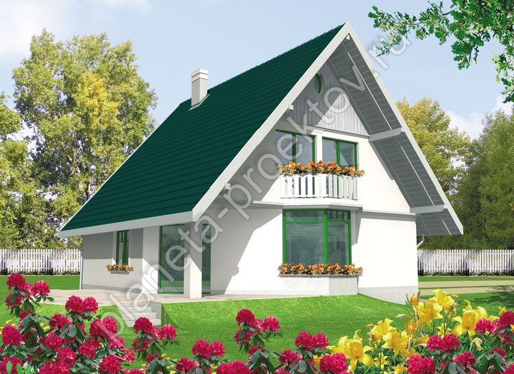 Этот дом в американском стиле, возведенный из блоков, вызывает интерес оригинальное решение в оформлении экстерьера. Смелое сочетание зеленого и белого выглядит довольно живо и свежо, а потому мимо такого дома просто невозможно пройти. При этом он представляет собой привычную двускатную конструкцию, скаты которой нависают над жилым зданием довольно низко. Дополнением к ней служит пристроенный гараж, возведенный под плоскую крышу. Скромность данного строения подчеркнута лаконично оформленной входной группой, которая состоит из крыльца и двускатного навеса над ним.