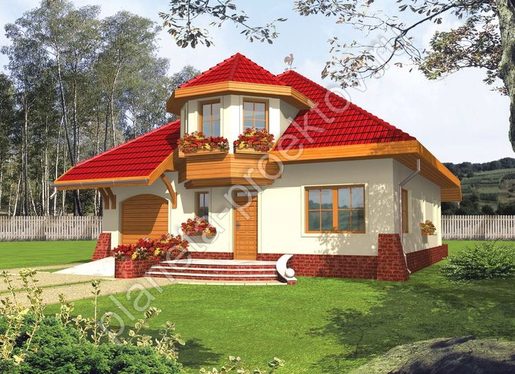 Пространственная организация помещений разрабатывалась с учетом того, что жилая зона будет расположена на обоих этажах. Благодаря этому на первом этаже достаточно места для обустройства гостевой зоны, а мансарда отдается под зону личного пользования их нескольких комнат и ванной. Гараж пристраивается к жилому зданию и возводится под одну с ним кровлю.