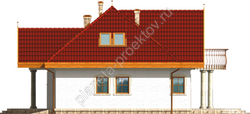 Представительный дом в американском стиле, построенный из блоков, выглядит стильно и роскошно благодаря тому, что обладает чертами, свойственному классическому направлению в строительстве. Расположенная по центру входная группа смотрится изящно, поскольку она дополнительно оформлена с помощью двух колонн. При этом композиционная стройность создается за счет того, что навес над входом имеет двускатную крышу, а все жилое здание – четырехскатную. С внутренней стороны дома планируется обустроить галерею-террасу полукруглой формы, над которой будет установлен балкон такой же формы, при этом держаться он будет на двух парах колонн.