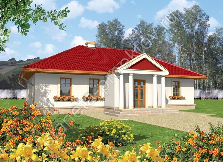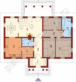Все помещения, согласно техническому плану, будут располагаться на единственном этаже, поэтому с точки зрения оформления пространства здесь не будет свободных площадей. Узкий холл разграничивает помещения на две группы – зону для приема гостей и зону отдыха. При этом гостиная удачно отделена от кухни и столовой, а помещения личного характера отграничены от гостевой зоны.