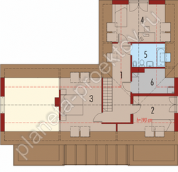 Организация пространства обоих ярусов отличается рациональностью и логичностью. Небольшой холл разделяет первый уровень на две зоны: гостевую и личного пользования. При этом гостиная и кухня грамотно отделены друг от друга, а в число помещений личного плана входит спальня. Небольшая мансарда также занята помещениями для личного пользования семьи, в состав которых входят три комнаты. Уютный и стильный коттедж с простым оформлением экстерьера и грамотной функциональной планировкой станет удобным жильем для современных покупателей.