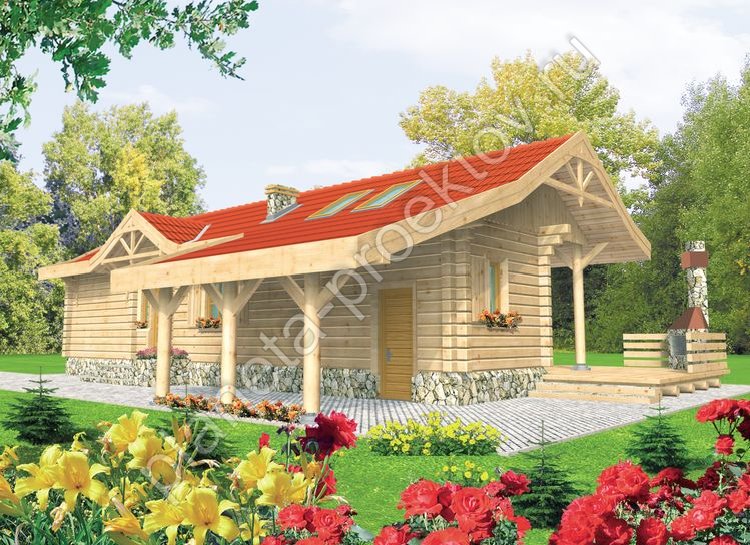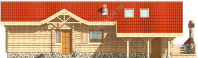 Небольшой коттедж в скандинавском стиле, построенный из блоков, по своему внешнему оформлению напоминает строения, которые можно построить по проектам деревянных домов. Конструкция отличается вытянутостью, при этом все жилые и бытовые помещения располагаются на пространстве в один этаж. Изящность внешнего облика достигается за счет того, что дом отделан деревом, а небольшая угловая терраса украшена колоннами. Она отличается тем, что в дальнем углу располагается камин. Отделка фундамента декоративным кирпичом способствует приданию строению выразительного облика.