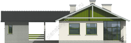 Ввиду того, что строение отличается горизонтальной направленностью, максимально точно решаются задачи организации пространства в плоскости. При этом основным помещением является гостевая зона, небольшую часть которой занимает кухня. Отдельно расположена группа помещений, предназначенная под зону отдыха. Завершает планировку оборудование двух санузлов. Легкие и простые строения могут быть возведены не только из блоков, но и из дерева, о чем говорят проекты деревянных домов.