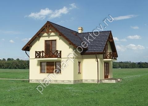 Компактный дом в американском стиле из блоков может быть размещен на любой приусадебной территории. При этом компактность не говорит о том, что объем жилой площади будет меньше – на самом деле, на пространстве в два этажа оформлены все помещения, которые необходимы для комфортабельного проживания. Входная группа оформляется лаконично и представляет собой небольшое крыльцо, двустворчатые двери, которые возведены под двускатный навес. Два балкона являются единственными декоративными архитектурными элементами.