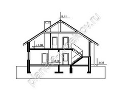 Это строение привлекает внимание оригинальностью фасадного оформления, которое включает в себя такие архитектурные элементы, как арки, а также нестандартное оформление балконного пространства. Проекты домов из газосиликатных блоков, дают возможность строительства функциональных и добротных строений, где главное внимание будет уделяться гармоничному сочетанию внутреннего обустройства с необычностью оформления фасада. В этом строении функции террасы выполняет зона перед входной дверью в дом.