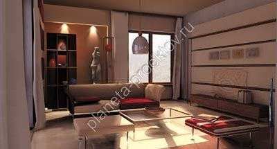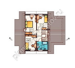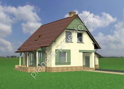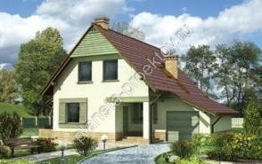 С точки зрения внутренней планировке в этом коттедже все четко и сбалансировано. Первый этаж – это гостиная, соединенная с кухней и выступающая в роли столовой одновременно. Здесь же запланировано оборудование санузла и технического помещения. На втором этаже планируется обустройство зоны отдыха, которая будет состоять из трех спален. Кроме того, здесь планируется обустройство просторной ванной комнаты. В целях большего удобства к коттеджу, выполненному по проекту дома из пеноблоков до 100 кв.м., пристраивается гараж.