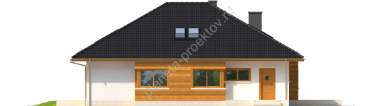 Планировка внутренних помещений отличается геометрической четкостью в распределении зон. Коттедж состоит из двух частей – гостевой и комнат, предназначенных под отдых. При этом обеденная зона располагается отдельно, между гостиной и кухней. С другой стороны холла располагаются три комнаты, служащие спальнями. По плану здесь же будут оборудованы раздельная спальня и санузел.