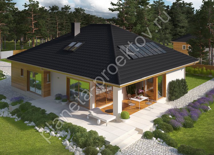 Эти готовые проекты коттеджей из кирпича, выполненные в средиземноморском стиле, обладает всеми чертами, свойственными этому направлению. Украшением строения служит галерея-терраса, на которой хватит места и для размещения обеденной зоны, и для обустройства места для отдыха. Раздвижные стеклянные двери позволяют выйти на террасу прямиком, не обходя ее. Покатая крыша, в которую встроены мансардные окна, является символом строений, возводимых в Средиземноморье.