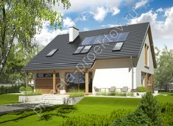 Довольно вместительный дом из кирпича, выполненный в европейском стиле, подойдет для проживания небольшой семьи. Квадратная в плане форма, гармонично сочетающаяся со спокойной архитектурой, дает возможность вписать его ландшафт любой местности. Традиционная конструкция с двускатной крышей удачно дополнена современными элементами. Все здание выполнено из кирпича и отделано штукатуркой, а первый этаж визуально подчеркивается отделкой деревянными панелями. Входной блок расположен на небольшой террасе, которую поддерживает узкие колонны.