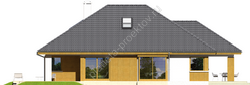 Просторный коттедж, выполненный по проекту дома в американском стиле из кирпича, будет уместно приобрести большим семьям. Несмотря на то, что в плане будет возводиться всего один этаж (мансарда есть, но она нежилая и может использоваться для утилитарных целей), на нем достаточно места для обустройства всех необходимых для жизни помещений. Четырехскатная кровля в сочетании с отделкой штукатуркой и деревянными панелями придает дому выразительность и цельность.