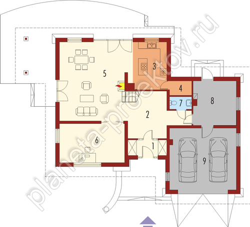 Как и полагается обстановке домов в японском стиле, в них довольно много пустых пространств и холлов. На первом этаже будет обустроенная большая гостиная, в которой разместится столовая. Кухня примыкает к этому помещению. Довольно просторная комната отдана под кабинет или библиотеку, завершается планировку оборудованием санузла и технического помещения, выйти из которого можно в гараж. Мансарда – это три комнаты отдыха и ванная.