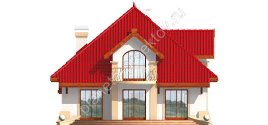 Оригинальность конструкции коттеджа в стиле американского кантри, построенного из кирпича, складывается из сочетания четырехскатной кровли и люкарн, встроенных в ее скаты. Данное направление предполагает возведение функционального и практичного строения, которое должно быть прочным и вместительным. Выразительность экстерьера достигается за счет балконов, колонн, а также галереи-террасы, на которую выходят сразу три двустворчатые двери из внутренних комнат. Терраса выглядит стильно и эффектно за счет того, что имеет полукруглую форму.