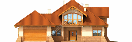 Акцент на первом этаже делается на просторной гостиной, украшением которой являются полукруглые полностью остекленные двустворчатые двери. Она имеет оригинальную конструкцию, благодаря чему оформление интерьера выглядит стильно и интересно. В эркере располагается обеденная зона. Двери-купе соединяют ее с кухней. В доме достаточно много свободного пространства, выраженного в многообразных холлах. В мансарде предполагается обустройство зоны отдыха, которая будет состоять из трех комнат. Венчает планировку дома оборудование на этом ярусе ванной и санузла.