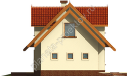 Скромный и неброский кирпичный дом, выполненный в стиле кантри, окажется подходящим даже для ограниченного в размерах участка. Интересный экстерьер складывается из грамотно подобранных цветов строительных материалов: белые оштукатуренные стены очень хорошо гармонируют с красной черепицей кровли. Фундамент облицован кирпичом. К числу архитектурных деталей, которые выстраивают фасад дома, относятся люкарна, эркер и балкон с витиеватыми балясинами. Парадная группа оформлена без излишеств, во внутренний двор можно выйти через гостиную на террасу.