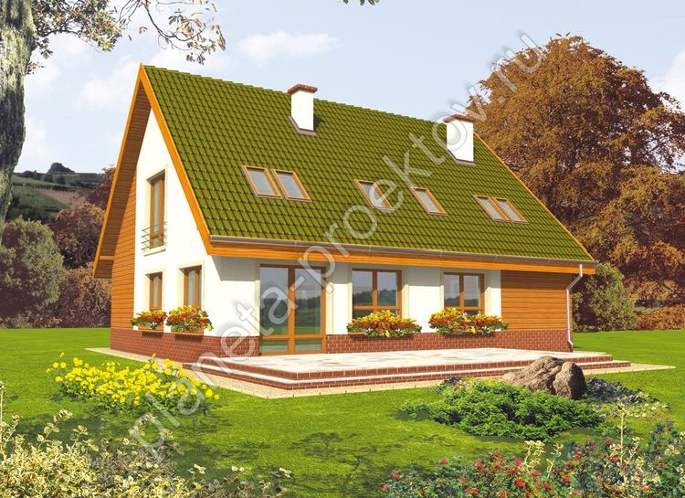 Стандартность конструкции, состоящей из двускатной крыши и симметрично расположенных окон, характерна для дома в американском стиле из кирпича. Оригинально выглядит сочетание разных строительных материалов в отделке: дерева и штукатурки. Грамотно подобранные цвета также способствуют тому, что строение отличается свежестью экстерьера. При довольно больших просторах сама конструкция отличается компактностью, поэтому вполне поместится на ограниченном в размерах участке.