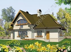 Симпатичный дом в американском стиле, построенный из кирпича, характеризуется обилием декоративных элементов. Привлекает внимание оформление входной группы: небольшая терраса предваряет вход в коттедж, она оформляется с помощью деревянных колонн, а сверху располагается люкарна, где будет спальня. Большое количество окон способствует тому, что во внутренних помещениях всегда светло. Многослойная кровля придает конструкции особенный выразительный вид.