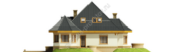 Благодаря двум эркерам планировка строения своеобразна и интересна. В одном из них удачно размещается столовая, а второй идеально подходит для оформления рядом с ним зоны отдыха. Кухня занимает совсем незначительное помещение и примыкает к гостиной, санузел относится к бытовым помещениям. Отличительная особенность планировки – наличие отдельно оформлено комнаты для гостей, состоящей из небольшой жилой комнаты, кухни и санузла. В мансарде предполагается обустройство трех спален и ванной комнаты.