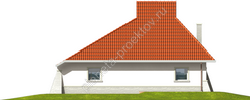 Необычность обустройства кровли делает данный кирпичный дом, выполненный в стиле кантри, особенным и свежим. Заключается своеобразие в том, что каждое отдельное помещение этого строения возведено под свою кровлю разной высоты. Над входной группой, оформленной просто и скромно, в скате крыши обустроена небольшая люкарна. Довольно просторная терраса украшает фасад дома с внутренней стороны, при этом важным декоративным элементом на ней является оригинально выполненная стена. Она облицована декоративной штукатуркой, которая используется и в отделке фундамента. Оригинальные колонны являются опорами кровли.