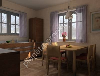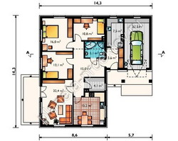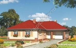 Представленная вашему вниманию проектная разработка Дамьян АР-99 отличается привлекательным внешним видом, комфортабельностью и практичностью. Несмотря на то, что жилая площадь ограничена территорией лишь одного этажа, внутренняя планировка коттеджа выполнена так, что здесь предусмотрены все необходимые помещения. Как правило, многие одноэтажные готовые проекты домов выполняются так, чтобы их внешний облик был максимально компактным, в связи с этим проектировщики редко используют такие элементы, как эркеры и пристройки.  Отличительной особенностью данной разработки является наличие встроенного гаража. Безусловно, это влияет на внешний облик постройки, существенно увеличивая её размеры. Однако при этом дом становится более функциональным и практичным. Внутреннее пространство этажа можно условно разделить на две зоны: гостиной и спален. В первой части по проекту предусмотрена кухня-столовая и гостиная с выходом на открытую площадку перед коттеджем. Во второй зоне размещаются три спальни и санузел. Коттедж рассчитан на постоянное проживание небольшой семьи из 3-4 человек.
