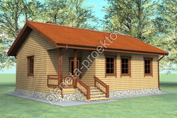Обустройство дачного участка предполагает, в первую очередь, строительство жилого строения, где всегда можно будет укрыться от холода и непогода и при необходимости, даже переночевать. Если раньше домики для дачи строились в основном своими силами из подручного материала, то теперь строительные компании предлагают по приемлемым ценам проекты дачных каркасных домов. Строительство будет осуществлено в довольно короткие сроки и не потребует колоссальных финансовых затрат. Данный проект домика для дачи отличается компактностью и практичностью. Внешний облик постройки выглядит достаточно просто, но при этом привлекательно. Вход в постройку предваряет лестница и небольшое крыльцо, размеры которого позволяют даже разместить здесь необходимые предметы хозяйственного обихода. Внутренняя планировка тщательно продумана проектировщиками. Ближе к выходу располагаются комнаты хозяйственного назначения: тамбур, санузел, техпомещение. Остальное пространство отводится под кухню, гостиную и две спальни. Этих комнат вполне хватит для сезонного проживания на даче небольшой семьи до 4 человек.