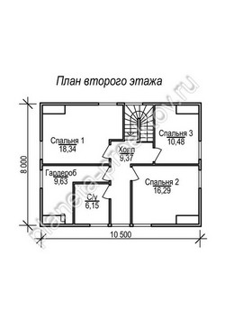 Это выразительное строение, выполненное по проекту каркасного дома или коттеджа, способно стать настоящей изюминкой окружающей местности. Красивая внешняя архитектура вкупе с грамотной планировкой помещения делает коттедж удобным и комфортным для проживания. Своеобразие внешнего вида достигается благодаря оригинальному оформлению второго этажа, крыша которого выступает над общей кровлей. С точки зрения внутреннего обустройства все логично: большая гостиная, отдельная кухня, кабинет и бытовые помещения – санузел и топочная. Второй этаж отводится под зону отдыха, в которой планируется обустройство трех спален, просторной гардеробной и санузла.